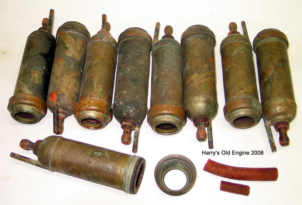 If you can help me find these exact cup parts, it would be appreciated. Also looking for a Stover or Fairbanks Morse vacuum pump engine as sold by the Empire Milking Machine Company of Rochester, New york. ABOUT THE DAIRY COWFrom a 1928 Empire catalog... Before we can intelligently consider the best methods of taking milk from a cow, we must know all we can about the cow and how she secretes and gives down milk. Unless every milking condition is recognized and proper provision is made for the comfort and health of the cow, the results are bound to be unsatisfactory. In the design of the Empire Milking Machine, all guess work has been eliminated because the cow and her calf have been used as guides. How the Cow Stores Milk: Every hour of the day the cow is making milk. The glands in the upper part of the udder are constantly at work storing up milk solids. At milking time these solids are mixed with water and pass through the milk channels to the milk reservoirs which are immediately over the teats. Most of the milk is made while the cow is being milked. It is therefore, of the utmost importance that nothing must be allowed to irritate, excite, or fret the cow at this time. Any of these things will cause her to hold back her milk, making it harder to get, causing her to make less milk. In many successful dairies it is the rule that for an hour previous to milking, the cows must have perfect quiet, no loud talking or anything to disturb or excite them. While the cows are being milked the same rules are observed and no roughness in milking or handling the cows is tolerated. A Delicate Mechanism: The modern dairy cow is a delicate, nervous animal. She is easily upset, especially when any unusual strain is put upon her udder or when there is even slight teat irritation. The teats are extremely sensitive and they are easily injured. Even when the same person milks a cow every day, by hand, she is likely to be restive and uncomfortable when the milking begins. With a stranger on the milking stool few cows will keep up to their standard production. For best results, milking must be regular, uniform and comfortable. This is almost impossible when milking is done by ha;d, because after milking a few cows the hands become tired and often the milker's temper becomes frayed. Or he is in a hurry to get the chore done and is likely to be a bit rough. How Should a Cow be Milked: The calf is the world's champion milker. Hands and machines can only imitate the calf's method. Hand milking is much further away from the natural calf style of milking than the Empire way which recreates the sucking and massage action of the calf so perfectly that heifers and even old cows have been observed licking the Empire pail just as they would lick their calves. Milking should be so comfortable that it does not disturb the cow. During milking cows continue to contentedly chew their cuds when Empire Milkers are used. Theyhave been knownto try and lie down while milking was going on. When it comes to the question of suiting the cow, there is no doubt about where the Empire Milker stands. Alternate Milking or All Teats at Once: If men had four hands, no question would ever have been raised as to how many teats to milk at one time. If it were easier to milk two teats in unison instead of alternately, which gives each hand a little rest and allows the milker to focus his attention on the hand which is giving the pressure, that would have become the accepted method. As it stands, we have only two hands and it is easier and more comfortable to milk in rhythm, first one hand and then the other. So many have come to took upon this as the natural, normal way. Let the Cow Decide: The cow can't talk but let us see what she might say. In the first place she secretes milk in all four quarters of her udder at one time and lets it down as soon as secreted. If only one teat is being milked the weight of the milk let down to the other teats soon distresses a cow unless it is drawn away. It puts a strain on the udder muscles and supports (mammary muscles) which is bad for the cow. When the calf milks he frequently switches from teat to teat and relieves this strain. With hand milking this switching around is imperfectly accomplished. Two teats are milked and then the other two. Then all the teats are stripped dry.