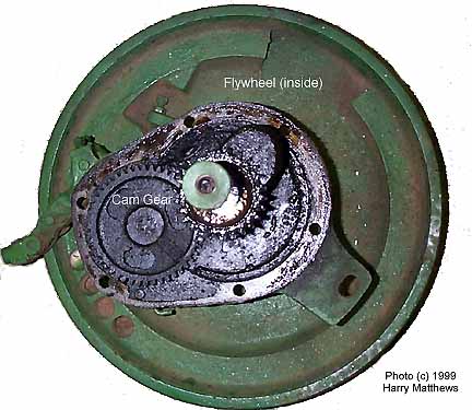 The top side was the easy part and the dirty work comes next. I couldn't pull the GIB so I removed the whole works, flywheel, crank & cam as a group. Pulling the GIB KEY is one hell of a big problem! Kinda' like