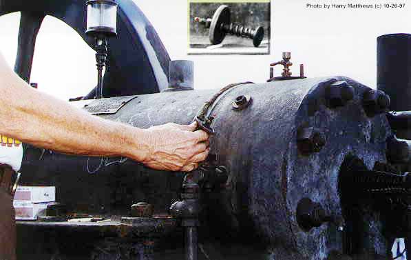 A whole series of type "N" engines evolved around this design, including match start. By the way, if you didn't want to deal with the match, you could always have someone trip the igniter. The problem is that you'd better trust both the igniter tripper and your own instincts of when to jump off! For the more cautious, there is a hand pump on the side that will pump a mixture of air and fuel into the combustion chamber while you hold the flywheel from turning. The ignitor or match can then be tripped to set off the mix.