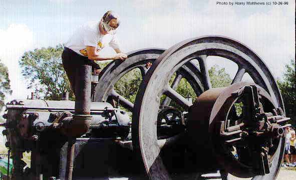 The hit of the show as far as I was concerned was a 32 Horsepower Fairbanks Morse Engine. This is hit and miss, 11,000 pounds of iron from 1905 that came from a feed mill in Kentucky. Its power was rated at 200 r.p.m., but it was slowed down considerably, so much so that you'd think it was going to stop just as it fired.