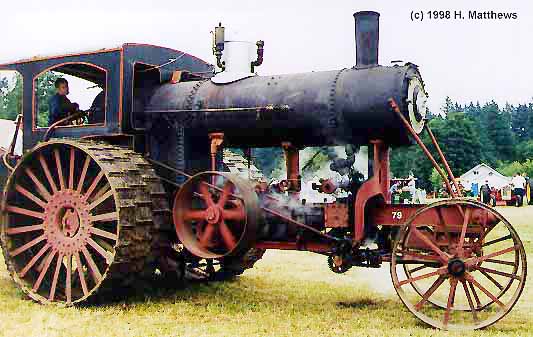 A tractor made by the Samson Iron Works with a Samson Gas Engine of 7x9 capacity at 450 rpm. It sports an Atwater Kent ignition inside the battery box. |